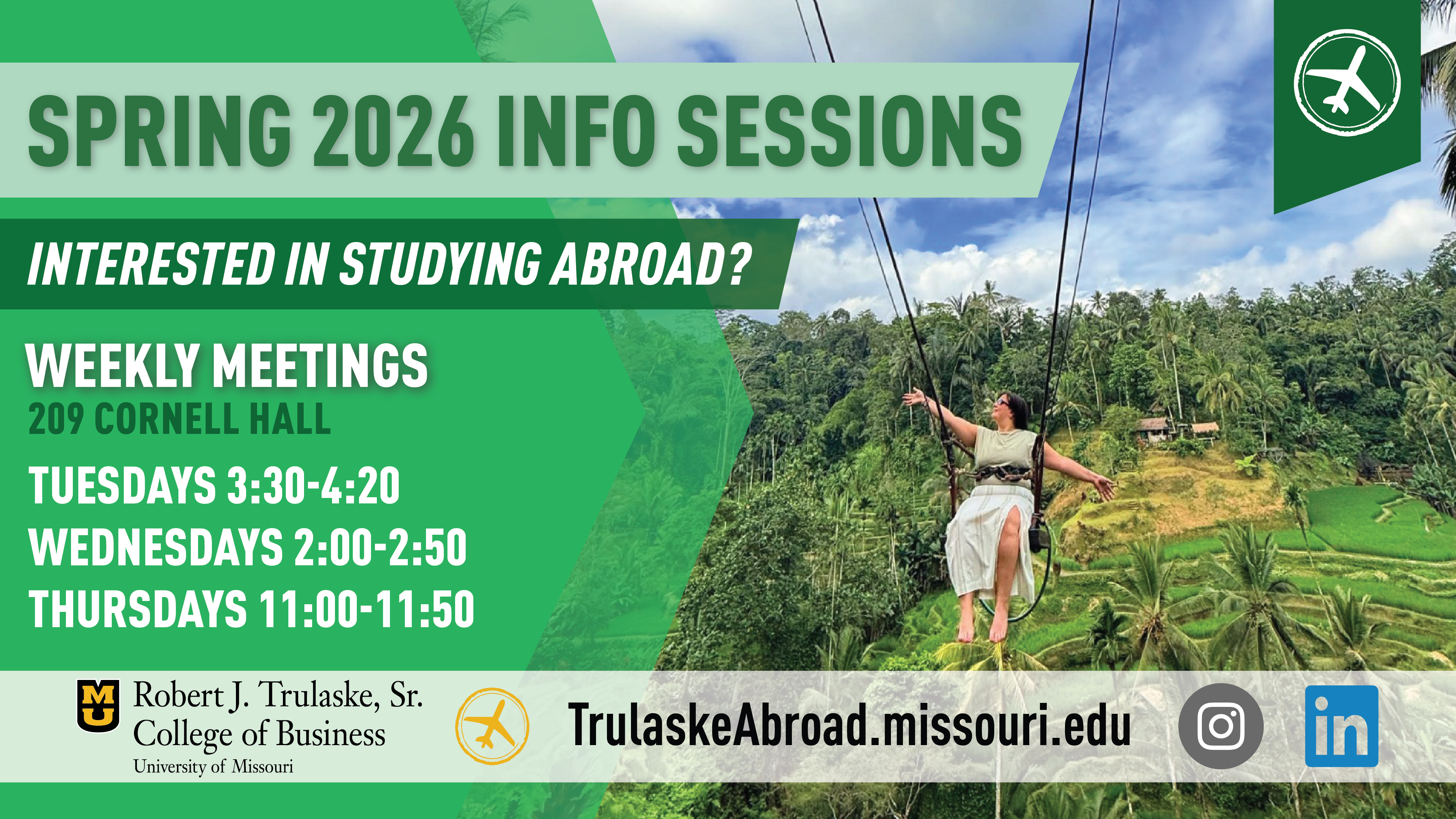 - Cody Miller, 213 Cornell Hall, 573-884-5312, TrulaskeAbroad@missouri.edu